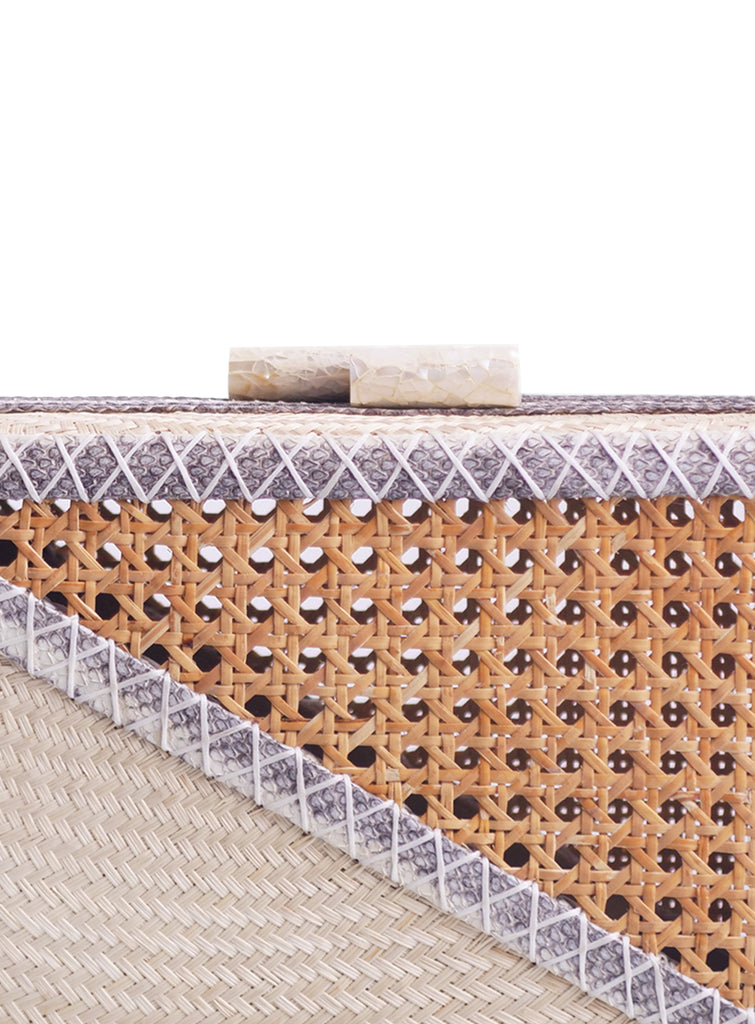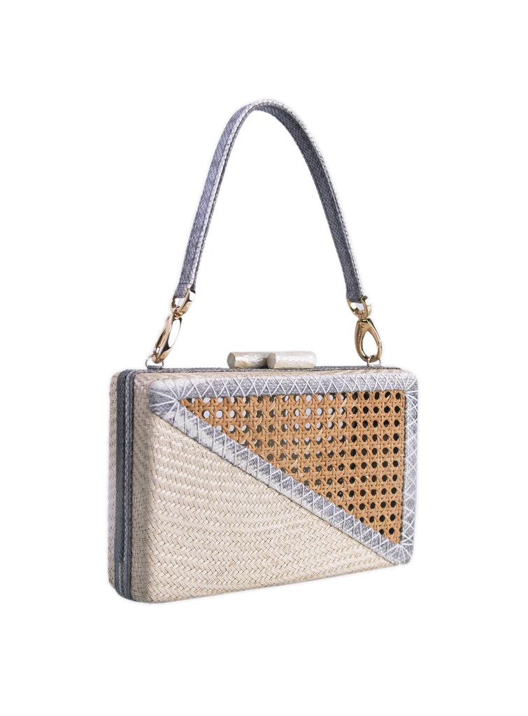 Class it up with the Clair clutch! Made from buntal fiber, rattan solihiya, and snake leather, this bag is distinguished by a fusion of elegant contemporary design and traditional craftsmanship.