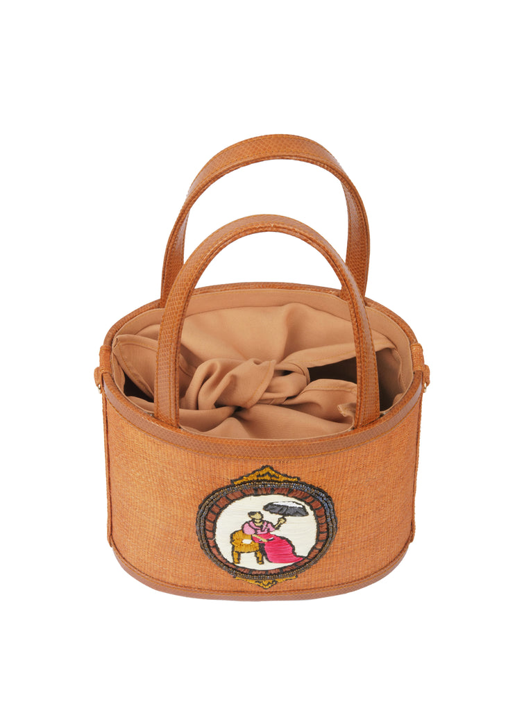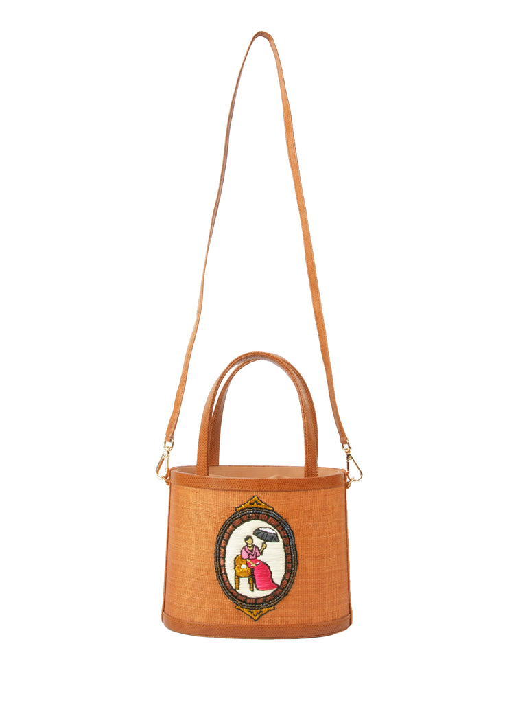 The Sofia handbag is classic yet original with its bucket shape and embroidered centerpiece of a portrait depicting a woman wearing a baro't saya. This special collection in collaboration with Chesca Kramer features bags with intricate, stylized embroidery of the traditional Baro’t Saya to celebrate Philippine women, culture, and history.
